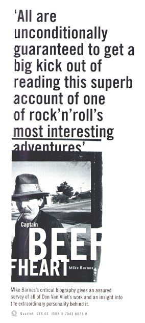 [Alert_Box Type =“Info”]这篇关于BeeFheart传记的评论由Julian Cowley撰写并从2000年7月的电线中获取。[/ Alert_box]作为一个小孩,唐·vliet(van来到以后)收集的头发从他的波斯猫,将它塑造成其他动物的相似之处。13岁时,他完成了北美和非洲的哺乳动物,并为Ayes-Ayes,Dik-Diks和其他奇怪的狐猴制定了一个特别的喜爱。然后他搬到了鱼。Mike Barnes在他的书中承认,他的书上尉Beefheart,Don Van Vliet的神奇人物的精致能力,以装饰他自己的陈述雷竞技ios下载阅读更多→